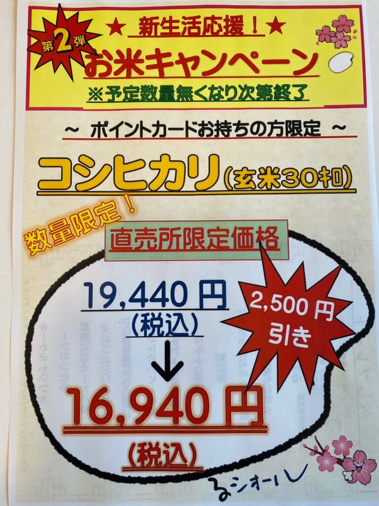 HOME NEWS / BLOG 【予告】第二弾お米キャンペーン”コシヒカリ”3/5(木)より!